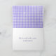 Cute Yorkshire skräcker på vit och lila gingham mönster med tack. Text kan redigeras eller tas bort.