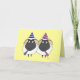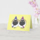 Visning för hälsningkort två förtjusande får i partyhattar med horns. Förse med text på hälsningkortet läser, "tackan för grattis på födelsedagen två!". Bakgrund visas som en gul färg, men det och stilsorten och formulerar kan lätt skräddarsy till spelar ingen roll dig skulle något liknande.