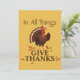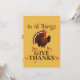 Fira och tacka under denna Thanksgiving med "Tacka Gud för Allt" och en söt kalkondesign för Thanksgiving. En färgrik guldbakgrund kompletterar höstlovsfärgerna och löven.