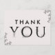 Det här blommigtens typografi-tack är perfekt för ett elegant bröllop. Den romantiska designen har en enkel text som dekoreras med blommor, botaniska kanter och en subtil bakgrund. Anpassa baksidan av vykortet med namnen, returadressen och ett tackmeddelande. Du kan också lämna tackmeddelandemallsavsnittet tomt om du vill att skrivan ska förses med en tankfull personlig på varje kort när de har anlänt. Dessa kort kan användas för en bröllop, möhippa eller vilken speciell händelse som helst.