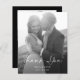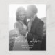 Det här är ett budgetvänligt, modernt och elegant bröllop-tack för svartvita foton som du använder med ett handskrivet skript som skrivs ut på ett pappert lakan. Ändra enkelt färg, text och foto. På baksidan finns ett annat foto och ett tackmeddelande som du kan anpassa. Kontakta designern om du vill ha frågor som rör den här designen.