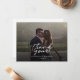 Ett underbart och tankeväckande sätt att tacka dina vänner, familj och medarbetare som tackade er för deras närvaro i din bröllopsdag med det här moderna fototacket som du kortar med skript med handskrivet "tack" och ett kärlek-hjärta.