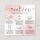 Rosa Aesthetic Cookies Care Card with feminine water color bakgrund, script typsnitt och biscuits care icons. I det här moderna kök- och lagringskortet finns information om hur du sköter och förvarar nya cookies och utrymme för din logotyp och affärsinformation. Den perfekt som avslutar beröring till paketeringen för cookies.