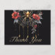 ditt speciella tack med den här mörken och den moody vykortsdesignen för Gothic Red and Guld Blommigt-Spindelnätet med en vackert detaljerad vattenfärgsröd blomma och Tack-spindel på guldet över en svart bakgrund. Lägg till ditt speciella meddelande och anpassa mallen till kostym efter dina behov.