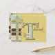 Cute dot grog med knapp ögon hoppar över ett b monogram som dekoreras med rand scallop och ribbontrim och namn bricka.