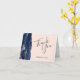 I elegant har det moderna bröllop-kortet en marin blå vattenfärgsagat gräns som trimmas med faux ro guld glitter. Anpassadet kombinerar ord "Tack" i handskriftsskript för kol-grått och namnen för bruden och groomen i kursivt teckensnitt på bakgrund.