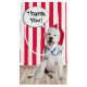 Tvättning av Jultomten med hatt och stetoskop på röd och vit bakgrund tack till veterinären. Text kan redigeras.