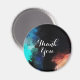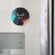 Tack magnet med en modern abstrakt design. Måla stänk och rotera färg i turkos, vitt, orange och svart med blått.