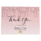 En enkel och modern bröllop-presentväska. Bakgrunden har en bild av mousserande rosa glitter droppar längs toppen. Den övriga bakgrunden är en delikat pastellfärgad övertoning i rosa färg.2 bröllop-band i guld under personligen. En finare-klassskiljelinje delar upp en del av texten.