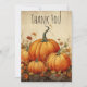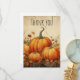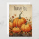 Tack för ett kort med en rustik illustration med orange pumpor och höst löv. En rustik grunge vibe.