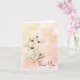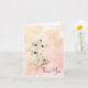 Vattentärsfärgad bukett på en orange och rosa vattenfärgsbakgrund med tack. All text kan redigeras.