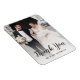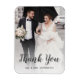 Vad är det för bättre sätt att tacka dina gäster i bröllop än med en fotomagnet i personligt bröllp? Anpassa den med ett foto av bruden och brudgummen. "Tack" visas i den visuella mörkens grått-skriptbokstav, med parets efternamn nedan. En vit övertoning lagrar tillhandahålls för att säkerställa att texten kontrasterar mot bakgrunden. Designad för ett fullt-foto. (Fotografiet som visas här är endast ett provexemplar och är inte avsett för återförsäljning. Det här kortet är avsett att köpas först när du har ersatt exempelfotot med en egen bild.)