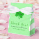 Denna förtjusande St patrick's day, som är en favoritväska för babyduschutformning, är främst av grönt och vita färg. Den här väskan har en söt, leende fyrklöver över en grönt och vit, strimlad bakgrund. Det här tacket som du föredrar är redo för att vara personlig och kan anpassas genom att använda verktyg som du har tillgång till ovan. Om du vill ha mer liknande designade babyduschartiklar kan du checka ut samlingen och besöka butiken.