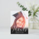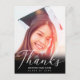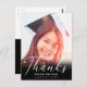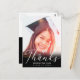 Tack till familjen och dina vänner för deras gåvor från studenten och välkommen önskemål med det här fotovykortet för anpassningsbar av elegant. Chicens designmall innehåller ett svart överlägg på grund och ett modernt, vitt skript med texten "Tack" och ditt namn samt klass/år nedan. Kortets baksida har ett tackkort och namnteckning för att du ska kunna anpassa gröntens bakgrund. Grattisar på studenten! Designad av konstnären Susan Coffey.