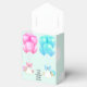 Twillingar för babydusch och pojkar föredrar lådor med söt rosa och blå ballonger och moln. Så här anpassar du redigeringstexten för att lägga till mor till namn.
