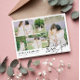 Tack för det vackra bröllop-kortet med en fotokollage som du kan lägga till fem av dina bröllop-foton i. Tack för att du är skriven i ett fantastiskt calligraphy-skript i högernas hörn i grund, med slingor. Lägg till datum och plats för namn och bröllop i ett teckensnitt för elegant. Baksidan är infogad så att du kan skriva ett personligt meddelande för hand.