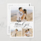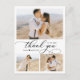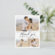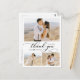 Budget Classic, Modern, Elegant Script 3 Photo Collage Prisable Bröllop - tack för ditt kort i svartvitt. Snyggt, minimalistisk bröllop-kortmall med fem (3) rasterfotokollage på framsidan och ett (1) foto på baksidan. "Tack"-text i en handskrift som skriver calligraphy font script med swash svan. Lilla kärlek-hjärta mellan namn. Anpassa med ditt namn och tack för meddelandet. Om du behöver hjälp eller matcha objekt kontaktar du designern!