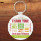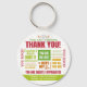 Det perfekt sättet att visa er uppskattning och tacksamhet.. Den här nyckelkedjan för snyggt visar flera variationer i ett tackmeddelande i röd, grönt och orange. Det skulle vara en underbar groomsmangåva - eller ett sätt att tacka lärare eller doktor.