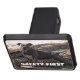 " Är säkerhet första" meddelandet på denna hake täcker. Denna släphake täcker shows en fotografera av en stilig blåttnäsa Pitbull namngav Sarge. Sarge står på en back med hans beklär fot på hans favorit- leksak, en skateboard. Hans hind ben sträcks ut bak honom som accentuerar hans starka muskler.