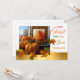 Höstens pumpor, ett ljus, höstfönster scen och löv pryder omslaget till denna tackfest inbjudan. Den mest färgrika tiden på året, meddelande på omslaget. Lägg till din evenemangsinformation på baksidan som önskat. Konst, bild och vers copyright © Shoaff Ballanger Studios, 2023.