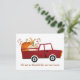Ett snyggt tackgivelse-kort för flyttmeddelande med en rolig röd lantlastbil som fraktar pumpor från en höstlig pumpodling. Vi har ett nytt hem denna höst med festliga röda och orangea färger. Ett elegant julkort för adressändring.