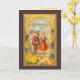 Vackert tacksägelsedags-kort med ett vintage-bild av två pilgrimer som bugar sina huvuden i tacksamhet för den rikliga skörden runt omkring dem. Bilden är livfull och ljus med en mörk bakgrund. Det är från en tacksägelsedags-bild från 1911 som vi har restaurerat.