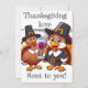 Detta kort kan användas för att inbjuda människor till ditt bord denna Thanksgiving eller för att skicka din kärlek när de inte är vid ditt bord. Tackgivelse kul seriefigur kort passar räkningen och kommer att tas emot med varm över ett vänligt kalkon som höjer ett glas vin.