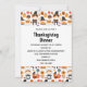 Tackgiving middagsinbjudan med ett säsongsbetonat Thanksgiving-mönster. Med fantasifulla pilgrimer, kalkoner, pumpapaj och andra olika hösttemaelement.
