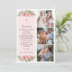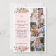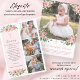 Detta rosa dop-kort tackar kort med blommor och flera foton för flickor har vackra buketter av akvarellrosor med botanisk växtlighet. Framsidan har 3 foton, elegant handstils-kalligrafi och ett enkelt kristet kors och detaljer om evenemanget skrivet i en vintage-typografi med serif i en super-elegant kolgrå ton. Baksidan har plats för ett annat foto, som är inramat av fler akvarellblommor, botanisk växtlighet och ett kors, samt en bibelvers, som du kan ändra till vad du vill. Baksidan av kortet kan inramas efter evenemanget och sparas som ett speciellt minne av tillfället. Designad som en del av min eleganta Rosy Pink-kollektion för bebisar och barn, se till att du utforskar de andra artiklarna i sviten för att skapa en elegant och samordnad stil för dopet. Om du behöver hjälp för att anpassa denna inbjudan eller vill att jag ska skapa ytterligare element som matchar, kontakta mig (Dawn) på admin@albamarie.com. Jag hjälper g