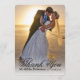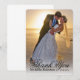 Tackkort | Enkel bröllopsfotonotkort. Skicka ut ditt tackmeddelande som nygifta till vänner och familj med hjälp av detta enkla, eleganta, minnesvärda tackkort med platt bröllopsfoto och orden "tack" skrivna med en svart script handskriven typsnitts textöverlägg. Ersätt provfotot med ditt eget bröllopsfoto för att skapa ett anpassat, personligt tackkort.