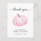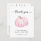 Tacka dina gäster med detta söta och minimalistiska tackkort med en pastellrosa akvarell av en pumpa och "tack" skrivet i ett stilfullt skrivstil med svängar. På baksidan kan du enkelt anpassa din returadress, tackmeddelande och signatur.