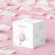 Tackkort för babyfest med flicka och rosa luftball presentaskar