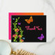 Det här vilda och funkiga tackkortet i platt stil har neongröna, orange, rosa, lila, gula och blå blomster_rankor och fjärilar som matchar Bat Mitzvah-inbjudan nedan. Om du behöver andra matchande föremål i denna design, vänligen maila din förfrågan till niteowlstudio@gmail.com.
