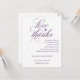 Visa dessa vackra platta tackkort på bordet vid er bröllopsmottagning för att tacka era gäster för att de var där och firade med er! Denna design har royal calligraphy i plommon / mörklila. Behöver en annan färg? Du kan ändra det enkelt genom att ändra bakgrundsfärgen!