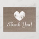 Tackkort för bröllop med burlap och rustikt hjärta vykort
