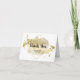 Tackkort för bröllop med gul löveffekt (konstgjord, ser ut som) med utbytbar svart text, tryckt på vit bakgrund