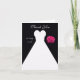 Detta tackkort för bröllopsfest har en vit brudklänning på svart bakgrund med en bukett rosa rosor vid sidan. Orden "Tack" visas ovanför brudklänningen och orden "så mycket" visas vid sidan av klänningen. Ett mycket vackert kort för att tacka för bröllopspresenten. Upphovsrätt Kathy Henis