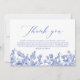 Uttryck din tacksamhet med det eleganta bröllopsfestkortet "Tack" med dammig blå blomdesign. Detta vackert designade kort har ett sofistikerat dammigt blått blommuster, vilket ger en touch av elegans till din uppskattning.