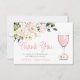 Det här tackkortet har ett vinroséguldt vinglas med rosafärgade blommor. Det är perfekt för en bröllopsfest på en vingård eller vinodling.