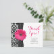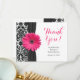 Personalisera texten på det här snygga och trendiga svartvita damaskmönstrade, rosa gerberatysta och band-försedda bröllops- eller brudfest-tackkortet (platt kort med kuvert). För att ändra texten, använd alternativen för att anpassa. För mer omfattande textändringar, till exempel ändringar av teckensnitt, teckensnittsfärg, teckensnittsstorlek och/eller textlayout, använd alternativet "Anpassa". Även om det här rosa gerberatysta damaskmönstrade tackkortet för närvarande är anpassat för en bröllopsfest, kan det också användas för andra speciella tillfällen så som. Det är verkligen upp till dig. Allt du behöver göra är att ändra texten. OBS: Det här varma rosa gerberatysta och svartvita damask