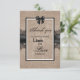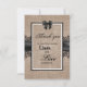 Tackkort för bröllopsceremoni med burlap, linne och spets.