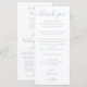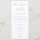 Ett elegant tackkort för dammblå bröllopsfirande, personligt anpassat med ditt speciella tackmeddelande i stilfull typografi och program för evenemang och brölloppsfest på baksidan. En speciell souvenir tack till era gäster. Designad av Thisisnotme
