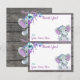 Supersöta elefantflicka-dusj tack-kort/etiketter med utrymme för text (lila och turkos/teal tema för baby shower). Dubbelsidig. Lägg till namn och text. Lämplig för flicka baby shower, födelsedag, etc. Du måste klippa kortet i två för att ha två tack-kort.