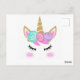 Tackkort för flickas födelsedag med enhörningstema vykort