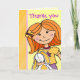 Snyggt modernt grafiskt tackkort efter fest för flickor. Flicka som kramar sin lyckliga vita kanin. Personalisera detta kort med det tackmeddelande du väljer. Originaldesign av Sarah Trett.