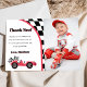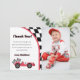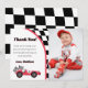 Tackkort för fotot till födelsedagsfest med röd racerbil