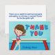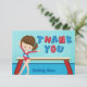Det här tacksamt vykortet för flickors gymnastik födelsedagsfest har en söt brunett gymnastikflicka som står framför en bom. Hon har en röd trikå och ler bredvid sin vackra blåa monogram.