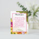 LÄGENHETEN dessa tackar den förtjusande 4x5 dig att card är perfekt för att tacka dina gäster för gåvorna som de kom med eller även precis för deras företag på din händelse. Perfekt för ett bröllop eller en förlovningsfest! Dessa är fullständigt anpassadet, och dikt kan endera tas bort fullständigt av enkelt att ta bort all texten tillsammans för att lämna rum för ett skriftligt personligt meddelande för räcka, eller du kan skräddarsy med din egna dikt eller text. Dessa skrivs på ut slätar, vibrerande matte 110lb täcker väger papper. Innehåller det 50% återanvända innehåll. Perfekt för dina formellaste inbjudningar, tacka dig kort och händelsemeddelanden. Dessa kommer med standarda vitkuvert.