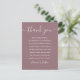 Ett elegant tackreceptions kort i mauve för bröllopsfirande. Personligt tackmeddelande i stilfull typografi. Ett speciellt minne för era gäster. Designad av Thisisnotme