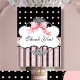 Det här tackkortet koordinerar med elegantens babyhandsinbjudning och har Fransk-skyltsnurrar, rosa- och grönt-punkter i bakgrunden, ett hårt band och en vacker handmålad rosa-båge. Allt är gjort av originalkonstverk av Audrey Jeanne Roberts. Resultatet är en vackert contemporary Baby enemble. På motsatt sida finns samma punkt mönster och en parentes som visar ett ställe för ditt baby-foto. DU KAN OCKSÅ UPPNÅ: